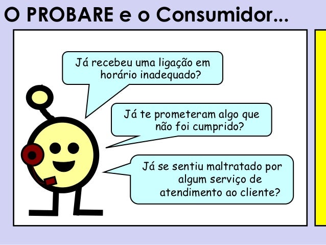 - 4. O PROBARE e o Consumidor... Já recebeu uma ligação em horário inadequado? Já te prometeram algo que não foi cumprido? Já se sentiu maltratado por algum serviço de atendimento ao cliente?